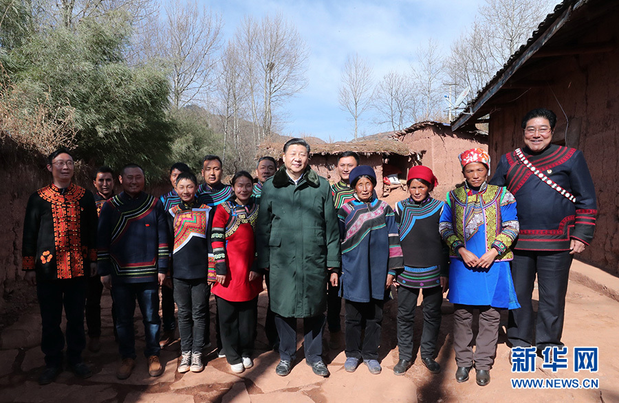 2月11日,中共中央總書(shū)記、國(guó)家主席、中央軍委主席習(xí)近平在四川考察。這是習(xí)近平在涼山彝族自治州昭覺(jué)縣三岔河鄉(xiāng)三河村貧困戶節(jié)列俄阿木家同鄉(xiāng)親們合影。新華社記者 謝環(huán)馳 攝