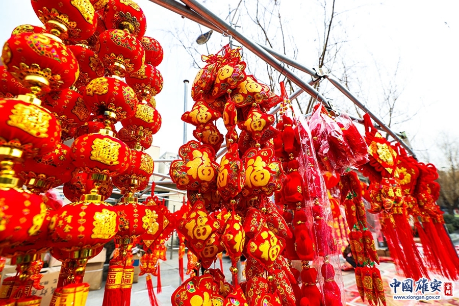 容城縣街邊的新春福袋生意很紅火。 毛鶴然/圖 張鵬/文