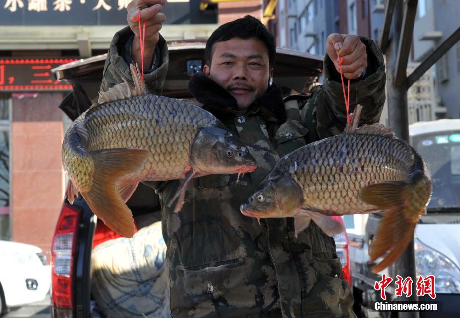 2月12日,臘月二十七,河北雄安新區即將迎來設立之后的首個春節。雄安三縣街頭的民眾們買年貨、掛燈籠、逛花市熱鬧非凡。圖為安新街頭民眾展示“年貨”。 中新社記者 韓冰 攝