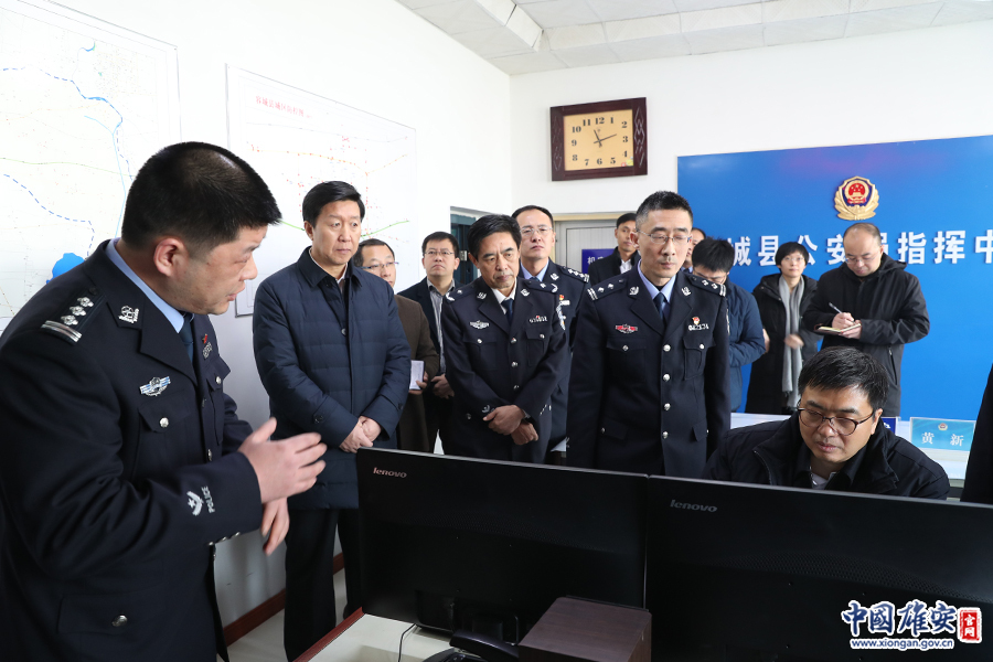 圖為陳剛、劉寶玲一行在容城縣公安局指揮中心。毛鶴然/攝
