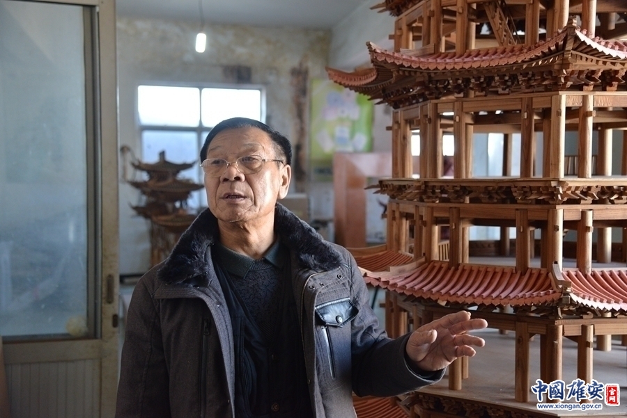 在雄安新區雄縣,有位老匠人叫鄧春江,擅長制作微縮古建。在他的家里,不僅有大雄寶殿,還有鐘樓、鼓樓、寺廟的山門……其中一對日月雙塔,鄧春江已經做了四年多,預計還要等上兩年才能完工。