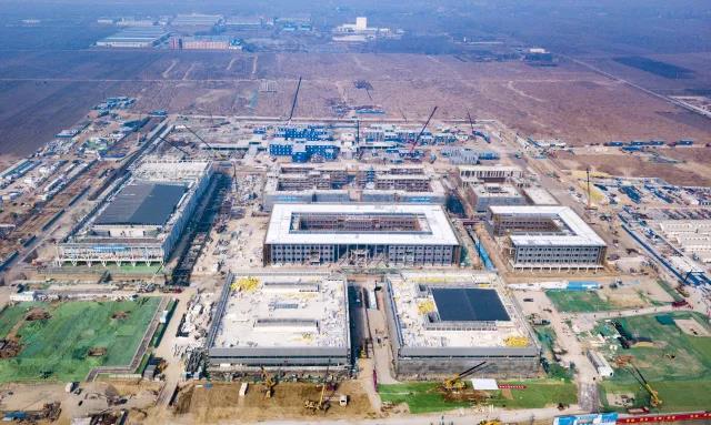 2月18日雄安市民服務(wù)中心項目建設(shè)現(xiàn)場鳥瞰圖。