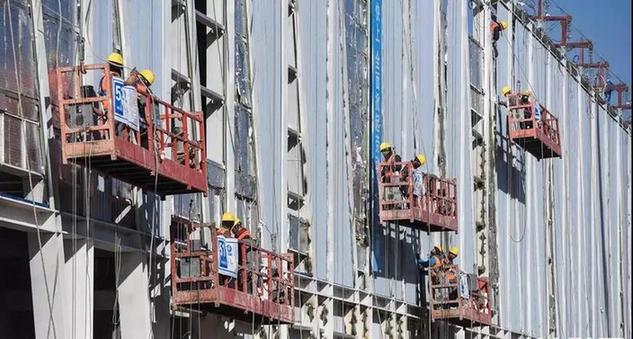 目前,施工現(xiàn)場正如火如荼地建設(shè),8個單體同時施工,會議中心等7棟單體進入了裝飾裝修階段,企業(yè)臨時用房進入集成房屋大面積吊裝階段。