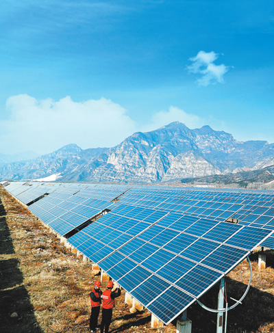 為推進京津冀協同發展和實現綠色冬奧的目標,北京市大力推廣普及清潔能源,不僅全力完成延慶冬奧賽區周邊區域“煤改電”任務,還積極推進張北柔性直流示范工程,將張家口地區的風電、太陽能等清潔能源送入北京北部電網,2019年竣工后預計每年可輸送100億千瓦時,相當于目前北京市全年用電量的1/9。圖為2月25日,國網北京延慶供電公司工作人員正在八達嶺太陽能光伏發電項目巡視設備。 記者 賀 勇 攝