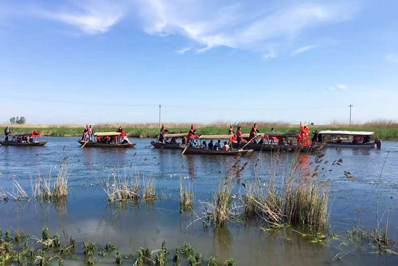 迎親的船隊早早出發,水天共鑒一對新人幸福的“水上婚禮”。 朱昆侖/圖 劉琪/文