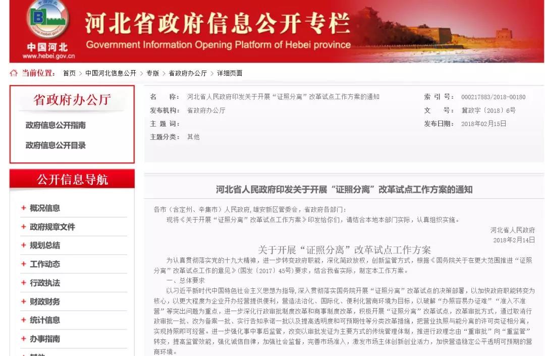 近日,河北省政府印發通知,將在雄安新區、石家莊國家高新技術產業開發區等12地開展“證照分離”改革試點工作,加快營造穩定公平透明可預期的營商環境。改革試點事項共101項。