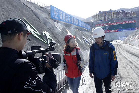 長城新媒體記者深入京張高鐵崇禮鐵路的建設現場進行直播采訪。記者 張世豪 攝