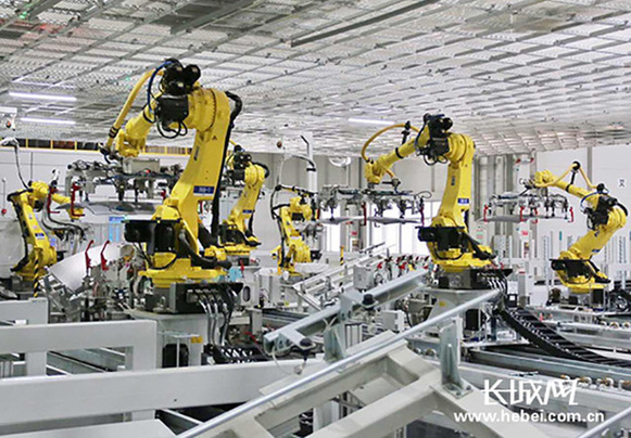 北京現(xiàn)代滄州工廠100%自動(dòng)化生產(chǎn)線。資料圖