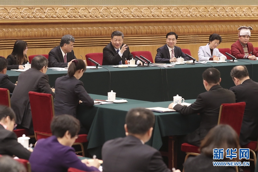 3月7日,中共中央總書記、國家主席、中央軍委主席習近平參加十三屆全國人大一次會議廣東代表團的審議。 新華社發(盛佳鵬 攝)