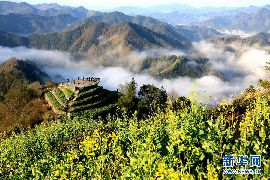 當日,陽光燦爛,氣溫回升,安徽省黃山市歙縣境內的石潭村、山水畫廓新安江、大洲源等地種植的油菜花陸續盛開,吸引著全國各地的游客到此觀光旅游。新華網發(潘成 攝)