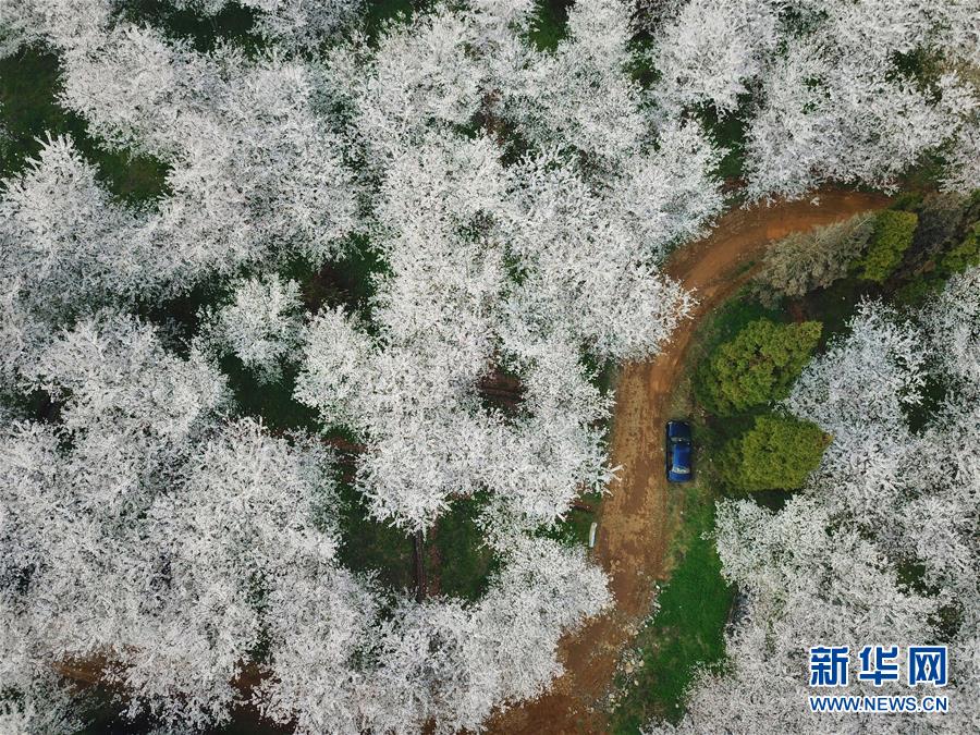 這是航拍的貴州省貴安新區櫻花園(無人機3月14日拍攝)。 新華社記者 歐東衢 攝