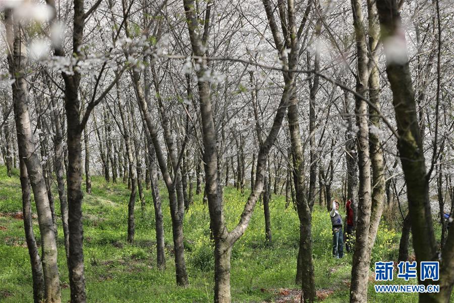 3月14日,游客在貴州省貴安新區櫻花園內賞花。 新華社記者 歐東衢 攝?