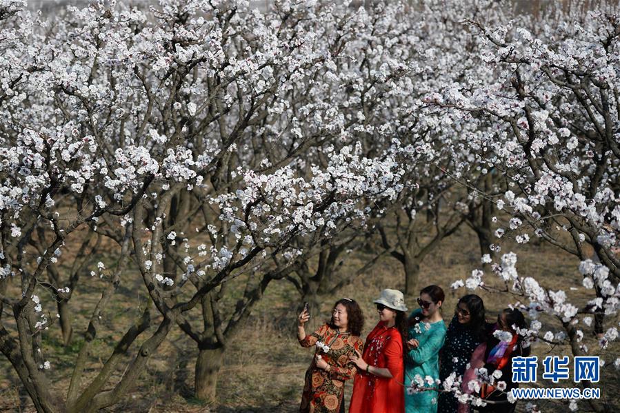 游人在陜西藍田杏花谷賞花(3月15日攝)。