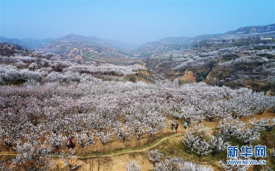 日前,陜西藍田華胥鎮上許村杏花谷里杏花綻放,連片的花海成為游人踏青休閑的好去處。