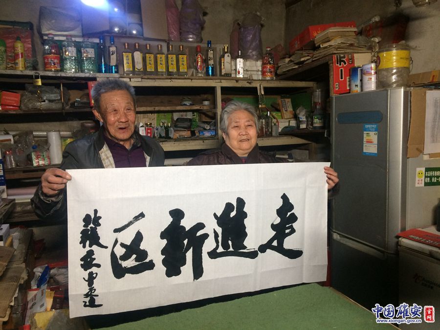 小賣部的主人是一對(duì)老夫婦,大爺愛(ài)好書(shū)法,揮筆寫(xiě)下“走進(jìn)新區(qū)”四個(gè)大字。簡(jiǎn)單樸實(shí)的四個(gè)字飽含老人對(duì)新區(qū)的向往。三十年來(lái),小賣部售出的不僅是貨物,更是記憶。老夫婦等待的不只是過(guò)客,更是歸人。