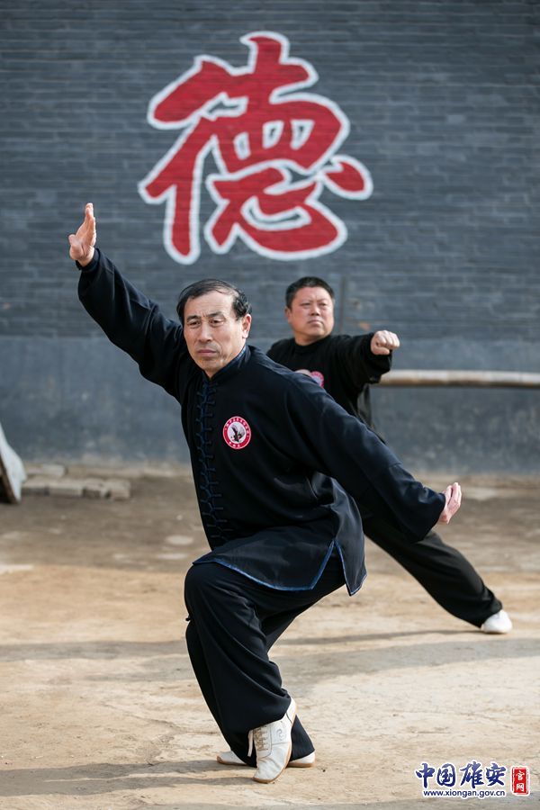 “出手拳掌打,回手鷹爪抓。雙拳密如雨,脆快一掛鞭?!标愖诱示游髟旱木毼鋱?chǎng)上,陳子正的第四代傳人陳德新與其身后的陳增岱兄弟二人正在演示鷹爪翻子拳。陳氏兄弟二人在此義務(wù)傳授武藝,全村上至80歲,下至8歲,無(wú)人不會(huì)鷹爪翻子拳。這是堅(jiān)守,更是傳承。(圖/王永康 文/石萍婷 )