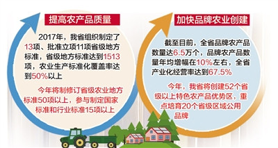 按照今年省委一號(hào)文件的要求,今年我省將繼續(xù)大力發(fā)展質(zhì)量農(nóng)業(yè)。實(shí)施“農(nóng)業(yè)質(zhì)量提升年”行動(dòng),健全覆蓋全產(chǎn)業(yè)鏈的農(nóng)業(yè)標(biāo)準(zhǔn)體系,2018年制修訂省級(jí)農(nóng)業(yè)地方標(biāo)準(zhǔn)50項(xiàng)以上,參與制定國(guó)家標(biāo)準(zhǔn)和行業(yè)標(biāo)準(zhǔn)15項(xiàng)以上。加快推進(jìn)“菜籃子”產(chǎn)品生產(chǎn)大縣、特色農(nóng)產(chǎn)品優(yōu)勢(shì)區(qū)、現(xiàn)代農(nóng)業(yè)園區(qū)、農(nóng)業(yè)規(guī)模經(jīng)營(yíng)主體按標(biāo)生產(chǎn),2018年省級(jí)現(xiàn)代農(nóng)業(yè)園區(qū)、示范家庭農(nóng)場(chǎng)、農(nóng)民合作社示范社實(shí)現(xiàn)標(biāo)準(zhǔn)化生產(chǎn),全省農(nóng)業(yè)標(biāo)準(zhǔn)化生產(chǎn)覆蓋率達(dá)到57%。全省農(nóng)產(chǎn)品質(zhì)量檢測(cè)整體合格率保持在98%以上,推動(dòng)農(nóng)業(yè)由增產(chǎn)導(dǎo)向向提質(zhì)導(dǎo)向轉(zhuǎn)變。