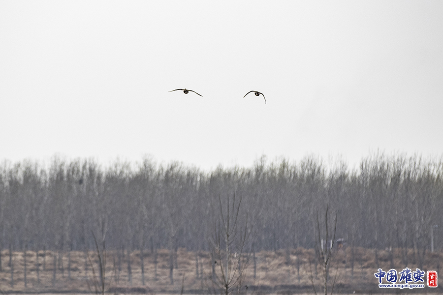 陽春三月,雄安新區容城縣南拒馬河上空,兩只飛鳥展翅翱翔。