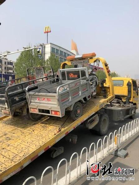 4月17日,保定市公安交警部門啟動實施號稱“史上最嚴”交通違法整治。圖為被查扣的三輪車。高峰攝