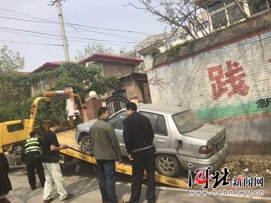 4月17日,保定市公安交警部門啟動實施號稱“史上最嚴”交通違法整治。圖為公安交警拖走僵尸車。高峰攝