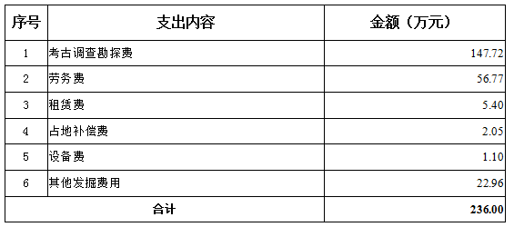 四、南陽遺址考古調(diào)查勘探試掘經(jīng)費(fèi)236萬元