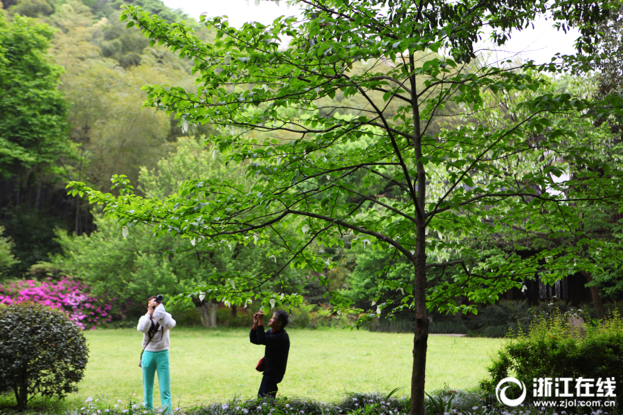 珙桐有“植物活化石”之稱,是1000萬年前新生代第三紀留下的孑遺植物,在第四紀冰川時期,大部分地區的珙桐相繼滅絕,只有在中國南方的一些地區幸存下來,目前是國家8種一級重點保護植物中的珍品,因其花形酷似展翅飛翔的白鴿而被西方植物學家命名為“中國鴿子樹”。由于森林的砍伐破壞及挖掘野生苗栽植,珙桐數量較少,分布范圍也日益縮小。在杭州植物園目前有五六棵較大的珙桐,長勢良好,也因珙桐花形狀較為奇特吸引了大量游客前來觀賞。(浙江在線記者姚群 石怡鋒 拍友錢江波攝)