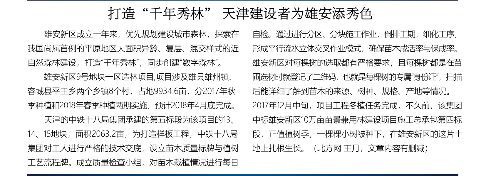 Xiongan New Area to plant 6,670 hectares of trees in 2018