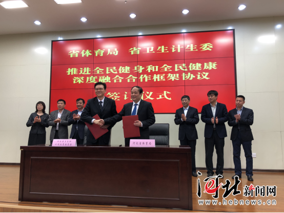 為加快推進健康河北建設,推動全民健身和全民健康深度融合,今天,河北省體育局、河北省衛生計生委在石家莊簽訂了《推進全民健身和全民健康深度融合合作框架協議》(以下簡稱《協議》)。