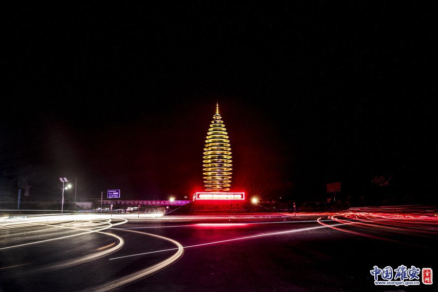 作為通向容城縣的必經之路,夜幕中經過容和塔的機動車絡繹不絕。