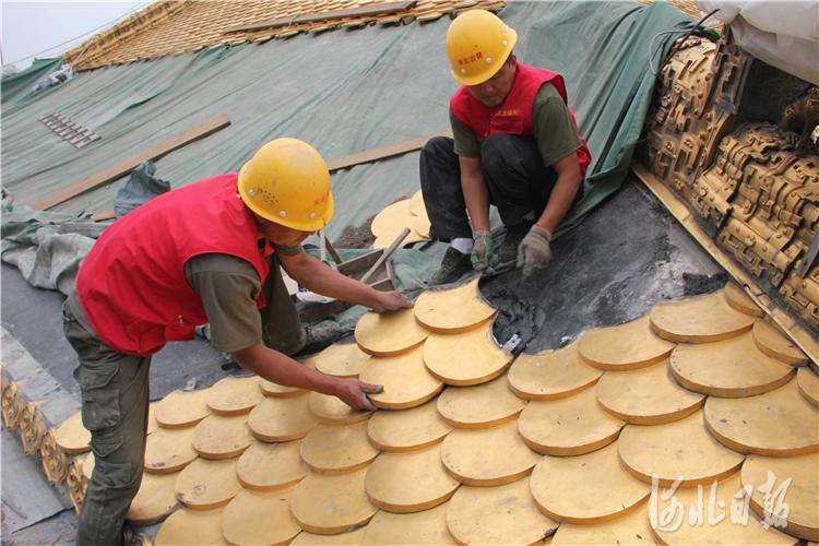 萬法歸一殿鎏金銅瓦安裝現場。河北省古建所供圖