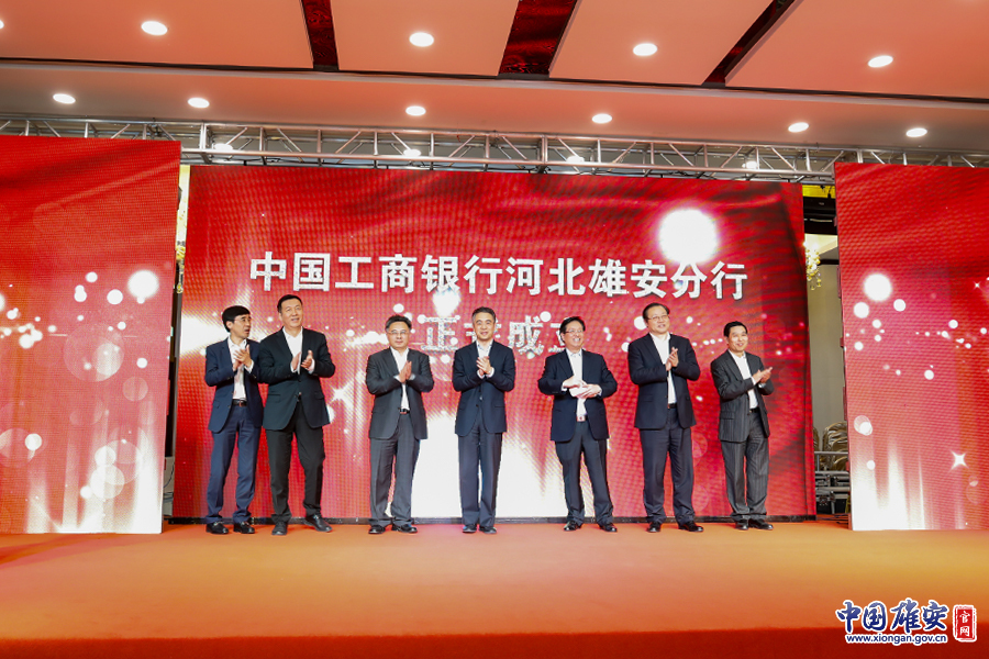 儀式上,中國工商銀行行長谷澍、副行長胡浩、董事會秘書官學清等共同為雄安分行揭牌。