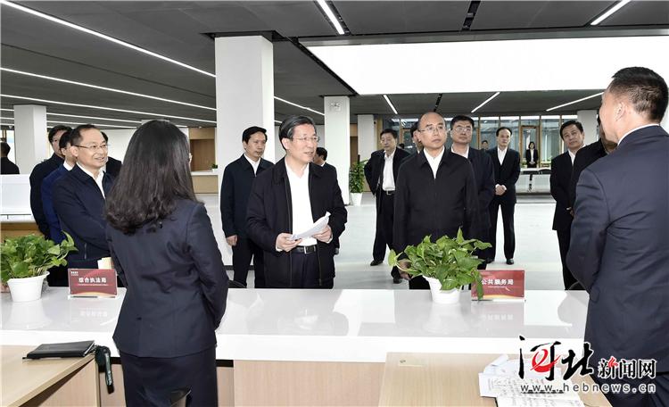4月25日下午,省委書記、省人大常委會主任王東峰赴雄安新區調研檢查。這是王東峰等省領導在雄安市民服務中心考察。記者趙威攝