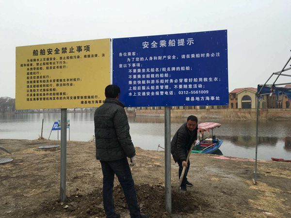 雄縣景區工作人員樹立安全警示牌。謝孟強 攝