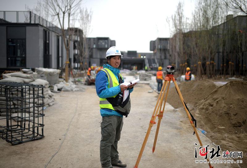 來自上海的26歲園林測量員委倍在雄安市民服務中心施工現場。