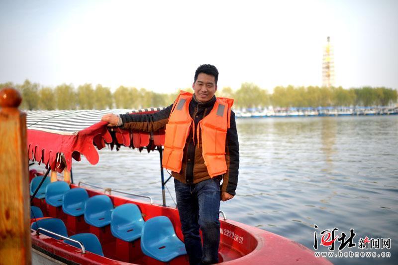 安新縣白洋淀碼頭,31歲的船工張秒對家鄉的變化深感自豪。