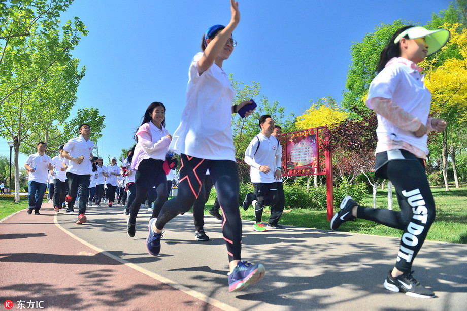 2018年5月3日,中國天津市南開區(qū),為紀(jì)念五四運(yùn)動(dòng)99周年,天津市南開區(qū)教育系統(tǒng)在綠水園開展“南開青年教師志愿者”公益跑活動(dòng)。紀(jì)念五四運(yùn)動(dòng)99周年公益跑活動(dòng)開跑。