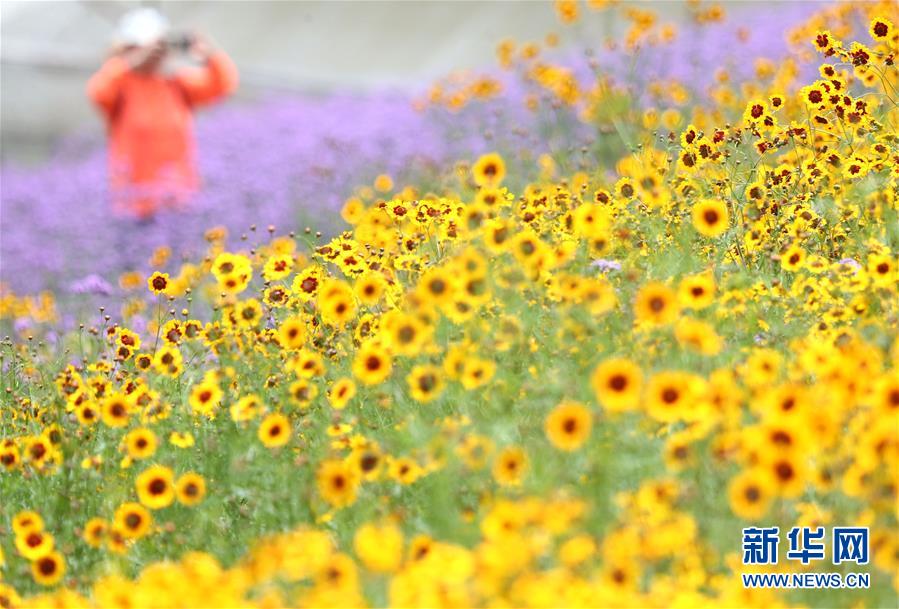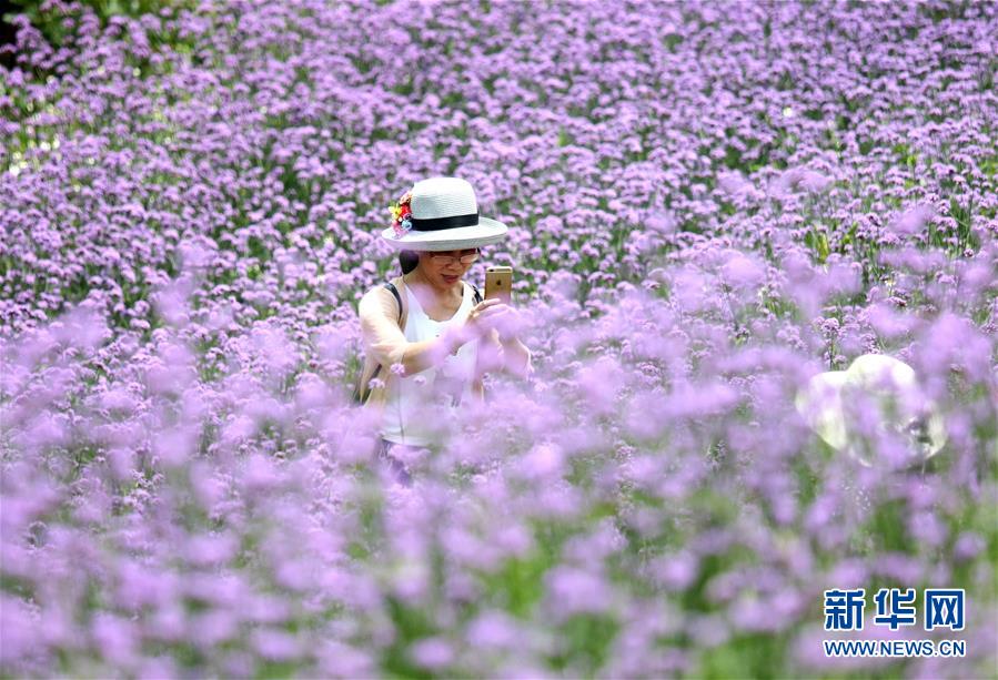 5月5日,游客在廣西南寧市良慶區(qū)那馬鎮(zhèn)壇良村壇板坡花海里拍攝。時(shí)下,廣西南寧市良慶區(qū)那馬鎮(zhèn)壇良村壇板坡100多畝馬鞭草和非洲雛菊競(jìng)相盛放,田園風(fēng)光吸引了不少游客前來觀賞。 新華社記者 周華 攝