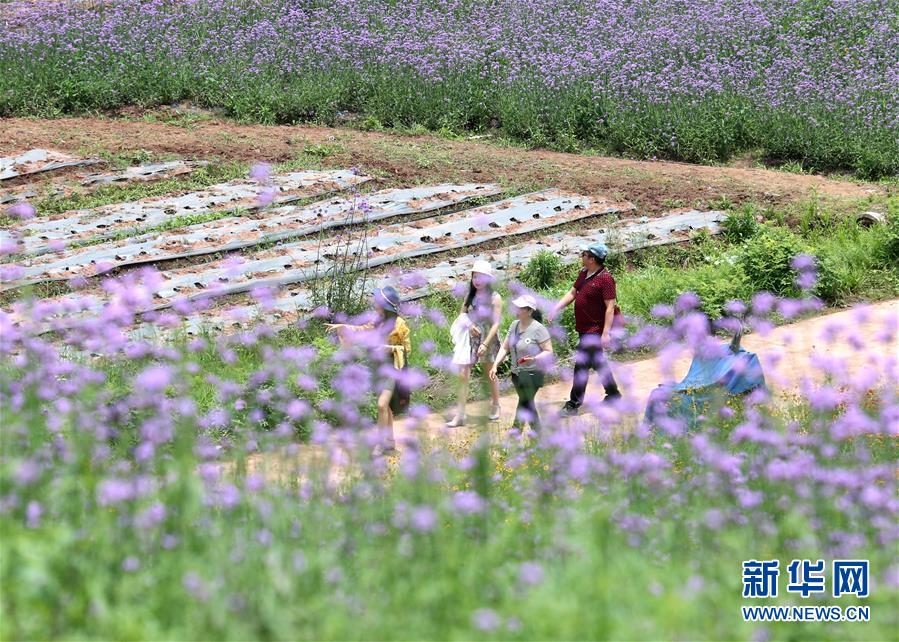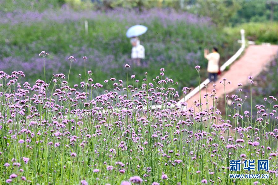 5月5日,游客漫步在廣西南寧市良慶區(qū)那馬鎮(zhèn)壇良村壇板坡花間小道上。時(shí)下,廣西南寧市良慶區(qū)那馬鎮(zhèn)壇良村壇板坡100多畝馬鞭草和非洲雛菊競(jìng)相盛放,田園風(fēng)光吸引了不少游客前來觀賞。 新華社記者 周華 攝