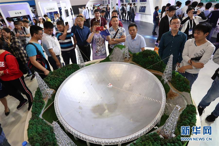 5月26日,市民在博覽會(huì)現(xiàn)場(chǎng)參觀FAST射電望遠(yuǎn)鏡模型。當(dāng)日,2018中國(guó)國(guó)際大數(shù)據(jù)產(chǎn)業(yè)博覽會(huì)在貴州省貴陽(yáng)市開(kāi)幕。 新華社記者 劉續(xù) 攝