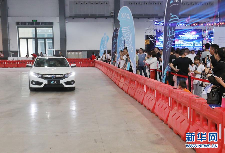 5月26日,參觀者在數博會上觀看無人駕駛汽車。當日,2018中國國際大數據產業博覽會在貴州省貴陽市開幕。本次數博會上,無人駕駛、虛擬試衣鏡等“黑科技”引人關注。 新華社記者 歐東衢攝
