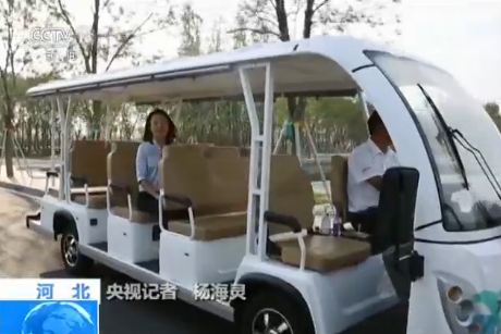 央視記者 楊海靈:市民服務中心最大的一個特點就是綠色和生態了。在這里所有的燃油車是不允許進入的,不管是來這里辦事情的市民,或者是這里的工作人員,可以選擇現在像我這樣乘坐電瓶車出行。當然也可以選擇步行或者騎車,園區還有很多這樣的共享電動車。通過這樣綠色出行方式,讓市民服務中心實現了零污染、零排放。
