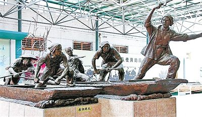 白洋淀雁翎隊紀念館內的雕塑。