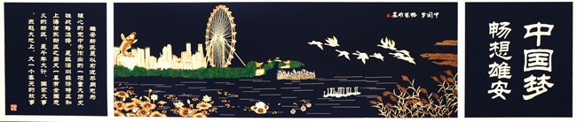 2017年中國花卉博覽會上,劉永樂的蘆葦畫作品《中國夢 暢想雄安》獲展品類大獎。畫面上寬闊的水域、飄蕩的蘆葦、田田的荷葉、盛開的荷花、翔集的百鳥、躍動的大魚……天水一色,葦淀相連。“家鄉的自然風光、人文風貌和民俗特色,是汲取不完的藝術滋養,是永不枯竭的創作源泉。”