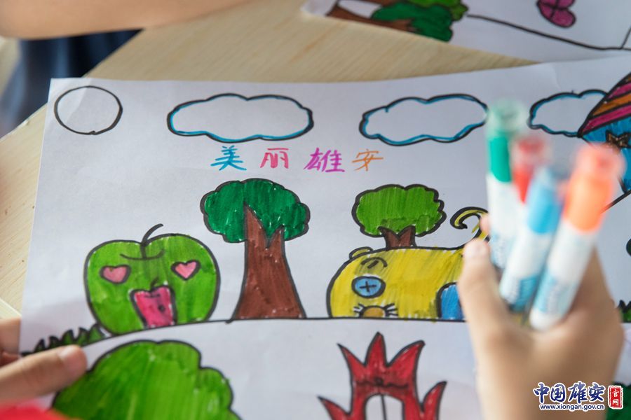 容城鎮溝西小學學生用畫筆描繪未來的雄安。王永康攝