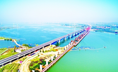 建設中的京張高鐵工程官廳水庫特大橋是京津冀低碳協同發展、北京疏解非首都功能的重要舉措之一。新華社發