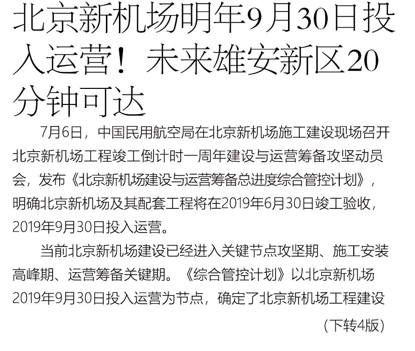 獨家探訪丨“鋼鐵鳳凰”初展顏 北京新機場明年6月30日竣工