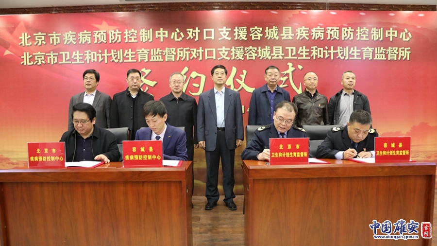 12月14日上午,北京市疾病預防控制中心、北京市衛生和計劃生育監督所分別與容城縣疾病預防控制中心、容城縣衛生和計劃生育監督所簽署對口支援幫扶協議。容城縣委宣傳部供圖