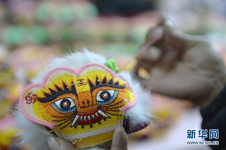 寒冬時節,河北省任縣的農村藝人有在農閑時節手工制作虎頭鞋的傳統。當地出產的虎頭鞋,鞋頭繡著小虎頭、虎嘴邊還有毛線制成的虎須、鞋的后面還有虎尾,要經過納鞋底、制鞋幫、繡虎臉等20多道工序制作而成,造型憨態可掬,深受城鄉居民喜愛。虎頭鞋一般用作小朋友的童鞋,寓意驅邪避災,祈愿孩子健康成長。目前,當地居民已經通過電商銷售虎頭鞋,將這種傳統工藝品銷往全國各地。新華社發(陳雷 攝)