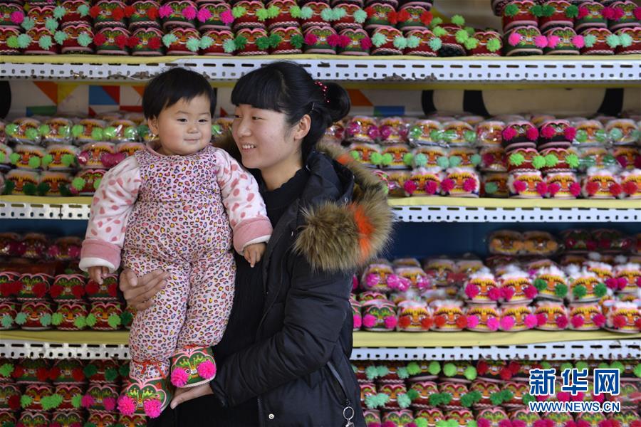 12月14日,河北省任縣崗上村的吉玥垚小朋友在試穿虎頭鞋。 新華社發(fā)(陳雷 攝)