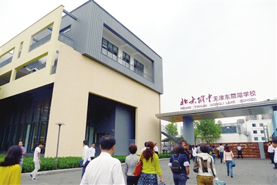 北京大學在異地創辦的第一所學校北大附中天津東麗湖學校落成并投入使用。該校占地面積4.7萬平方米,集教學樓、科技樓、體育館等于一體,分為小學部、初中部、高中部三部分。此次合作辦學不但可為東麗人民提供更好的公共教育服務,也成為京津冀協同發展教育典范。